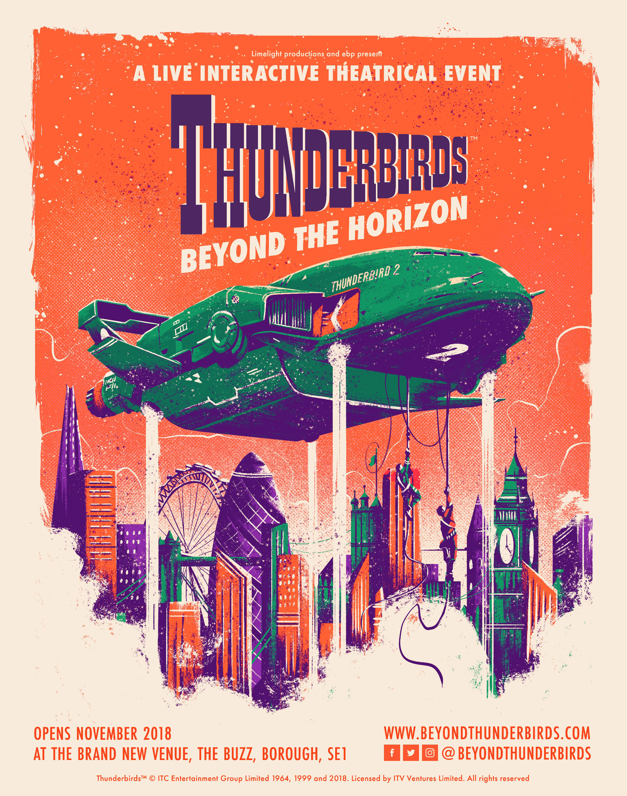 Richard Lewis from Limelight Productions said today, “Three years ago, I began a journey with ITV which will culminate this autumn in the opportunity to experience the world of International Rescue. Having watched the original series as a boy the iconic countdown, “5-4–3–2–1… Thunderbirds are Go!“ is enough to make the hairs on the back of my neck stand up. My ambition has always been to have our audience experience the visceral feeling of being rescued by a Thunderbird. It’s not an easy task, so much so that we have had to build our own venue in London to do so! Our extraordinarily experienced creative team is bursting with ideas and passion to make my ambition our reality. I can’t wait!”