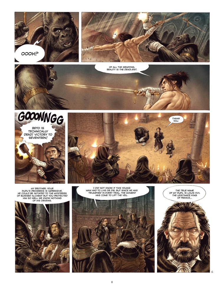 The Temple of the Knights of Heliopolis: an assembly of immortal alchemists cut off from the world. As disciple Seventeen prepares to complete his training the terrible secret of his origins is revealed – Seventeen is actually the hidden son of King Louis XVI. Will the young heir claim the throne or remain in the shadows, faithful to the millennial precepts of Alchemy?