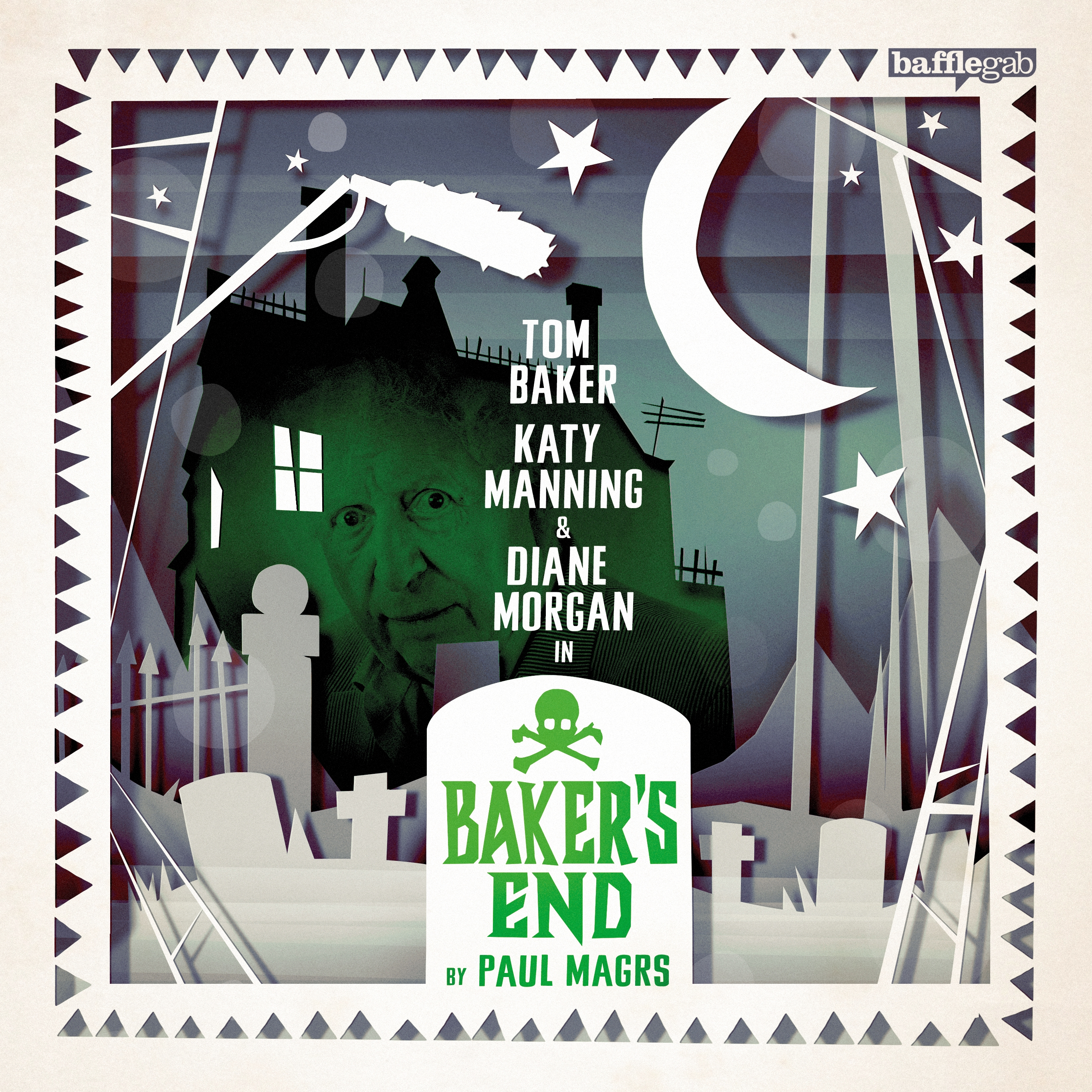 “Nice things” don’t happen to Tom Baker in this second account of extracts from his life in retirement. As totally insane as its predecessor, with a regard for the English language that swerves from Stanley Unwin to Mervyn Peake via Lewis Carroll, this second Baker’s End adventure is a delight from start to finish. Tom Baker is playing “Tom Baker”, toblerthwumping thespian and currently King of the Cats (hence the references to his tail, which may confuse anyone who didn’t hear the first story!) who lives at Baker’s End with his housekeeper Mrs Frimbly (Susan Jameson). They are visited by the actress who played Tom’s companion on television – who’s played by Katy Manning, setting aside her trademark ditziness for a more serious role that plays nicely against expectation. The village in which they live is descended upon by a ghost-hunting TV crew (Diane Morgan and Stephen Critchlow) who decide to make an episode of their series Manifest Yourself at Gobbleknoll Hall. But wouldn’t you know it? There really are ghosts there…