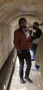 There was a tunnel built between the Brighton Pavilion and what was The Stables, supposedly for the Prince Regent who was colossally overweight so he wasn’t seen by anybody. I don’t think it’s open to the public but that’s where we did all of the Albanian dungeon stuff and a lot of the running around. But it was grim. Those guys were super Covid cautious which is perfectly sensible but you’re in a dark sweaty tunnel with masks on, it was all quite unpleasant.
