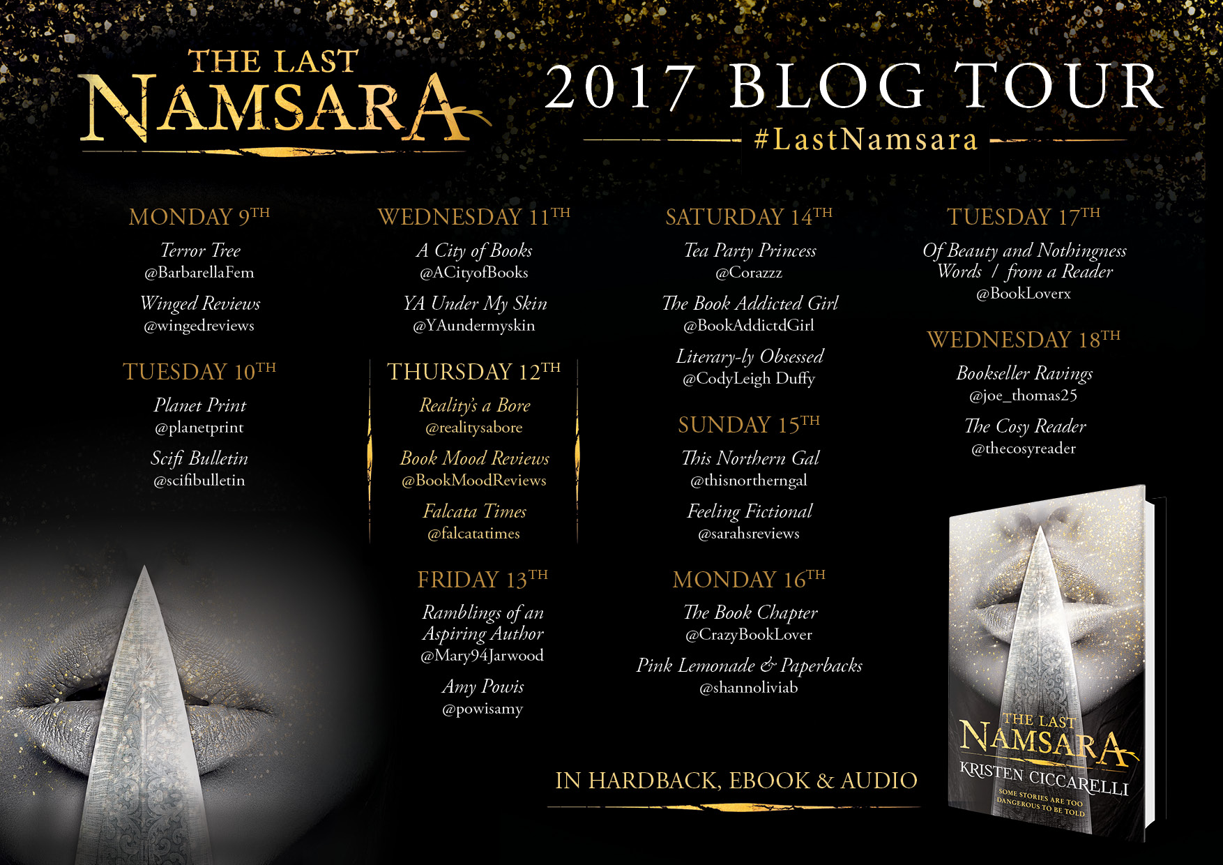 he Last Namsara is published by Gollancz on October 12. Kristen Ciccarelli will be appearing on a panel with Melinda Salisbury, Alwyn Hamilton and Amy Alward at Islington Library on November 2. More details and tickets here.