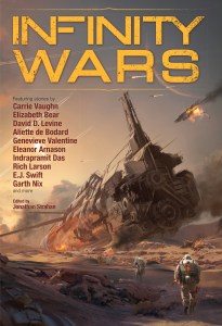 All of this goes a little way to explaining why, when Jonathan Strahan asked me to write a story for Infinity Wars, I went in a completely different direction than he was likely expecting. In “The Evening of Their Span of Days,” I didn’t write about soldiers or combat. I didn’t write about an army. I didn’t really write about the military at all. But I did write about what happens when war comes to people who don’t expect it. Or to people who do expect it but must live as if they don’t, if they are to function day-to-day.
