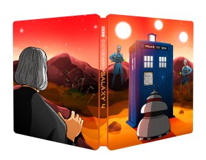 The last story produced by Verity Lambert for Doctor Who – or at least, set up by her; John Wiles was in charge for much of it – Galaxy 4 is very few people’s idea of a strong William Hartnell serial. For many years all that existed was a clip from episode 1 before Air Lock, its third episode, was found in 2011 (the story of which forms one of the documentaries on the 2nd disc). It’s now the first of what executive producer Gary Russell, in his commentary for episode 1, describes as a new wave of Hartnell animations, following on from the pretty much total focus on the Patrick Troughton era over the last five years.