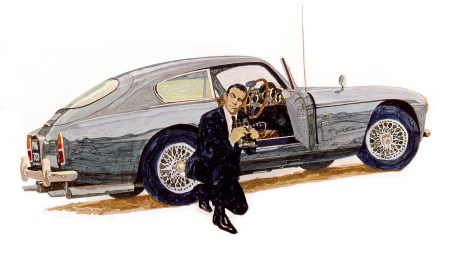 Although he loves science fiction and is currently reading the works of J.G. Ballard, Sanders didn’t do much else in that field throughout his career. He was asked to illustrate a series called Cars in Fiction, and drew Sean Connery as James Bond alongside an Aston Martin – but used the correct version, the DB III, from Ian Fleming’s novel Goldfinger, rather than the DB5 in the movie. “The DB III was mine, the one in the illustration,” he notes. “The reason I used Connery was because for me he was James Bond and he’s never been replaced in my mind.”