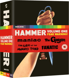 One of the frustrations of Hammer’s output is the use of different distributors for their product. Unless all the different companies agreed to join together and release a single boxset (unlikely) you have to pick up single or clustered releases to build up the whole. Kudos to Indicator for releasing these more obscure Hammer flicks, which really aren’t connected beyond being released over a two-year period – Maniac, The Gorgon, The Curse of the Mummy’s Tomb and Fanatic.