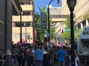 Dragoncon is not like any other convention. For starters, it is mostly fan-led. Other signature conventions – New York Comic Con, C2E2, Chicago Wizard World – are owned by media corporations. Over 2,300 volunteers run Dragoncon, handling everything from media relations to facilities management to booking celebrities. Those volunteers don’t change much year to year, and with many guests also making the trip annually – Peter David has gone pretty much since the beginning – the weekend (always Labor Day) has the feeling of a family reunion.