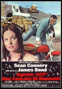The pre-credits opening promises a return to the sort of hi-jinks the series had been shooting towards before the rather abruptly sober turn of OHMSS – a face-off with Blofeld (played here by Charles Gray, also returning from You Only Live Twice and his brief role as Dikko Henderson) which turns into a face-off with body doubles and the eventual ‘killing’ of the arch criminal by immersion in….hot liquid goo? At any rate, his single-minded pursuit of SPECTRE’s notorious Number One done, what exciting and wondrous adventures of derring-do could wait for our hero next?