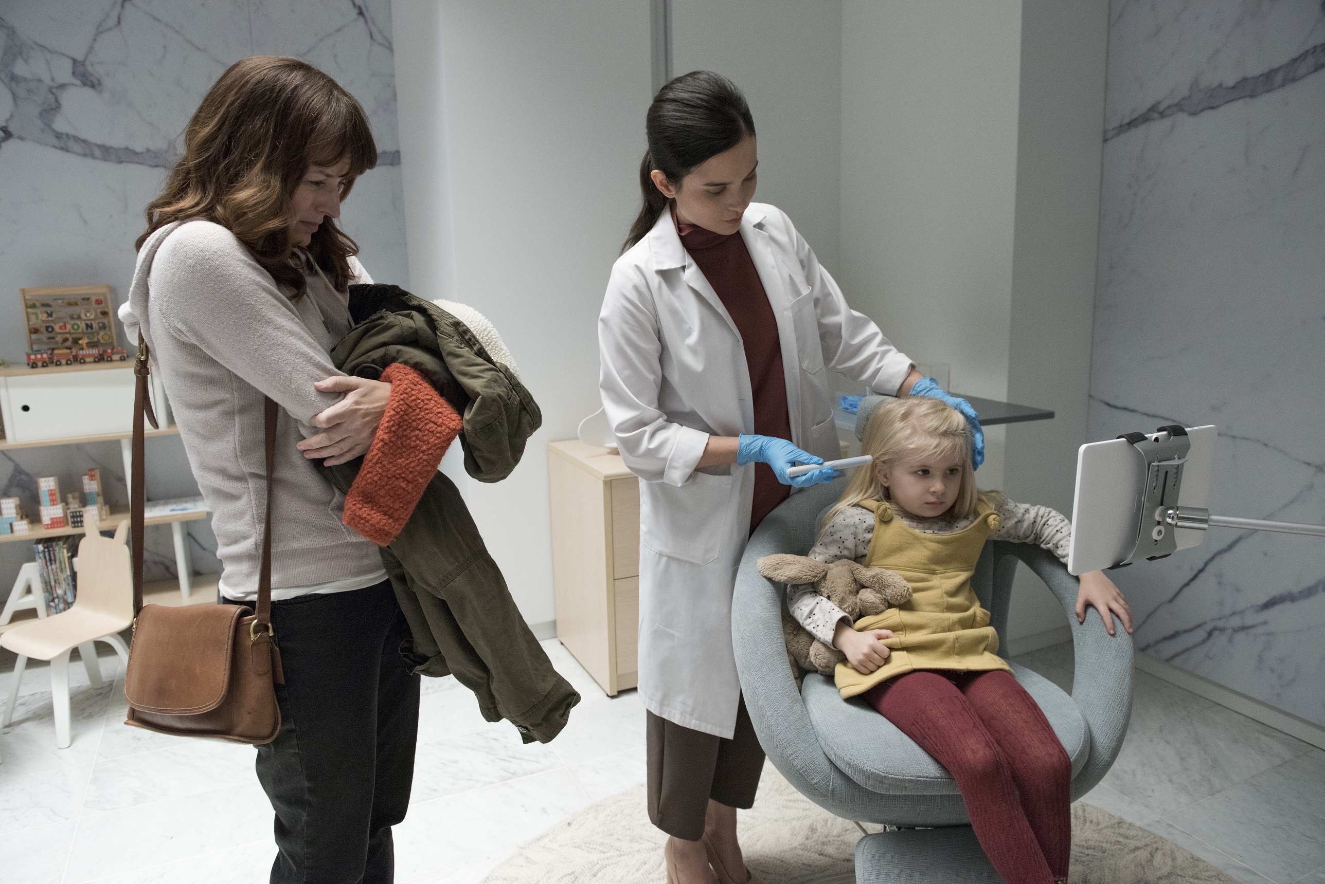 Alicia DeWitt is carving a fine career in ‘mom who loses child’ having previously been Carol-Anne’s mother in the Poltergeist remake and now the over-protective mother of three-year-old Sara. It would be easy to describe her as neurotic, but having nearly lost the baby at birth, and then following a temporary disappearance, it’s easy to see why she wants to wrap the child in cotton wool. And that’s why this cautionary tale by Charlie Brooker, directed by Jodie Foster, works so well. She’s not a monster by any stretch and her helicopter parenting at first seems reasonable if not invasive.