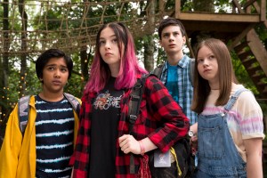 The blend of humour and drama is one of the show’s strengths: Glen’s insistence on being the one to be teleported looks as if it’s going to end more tragically than you might expect in a CBBC drama, but it’s a good reason for the lurking watcher introduced earlier to make himself known (although there are plenty of questions about him and Otto still to be answered). Kaz and Meg are beginning to bond nicely – Kaz’s cruel to be kind moments ring very true – and the revelations about why Louis is there are handled sensitively. We’re getting to know a bit more about the other campers, particularly those who are really too old (or consider themselves to be too old) to be there, with teen jealousy rearing its head without any danger of the show veering into romcom territory.