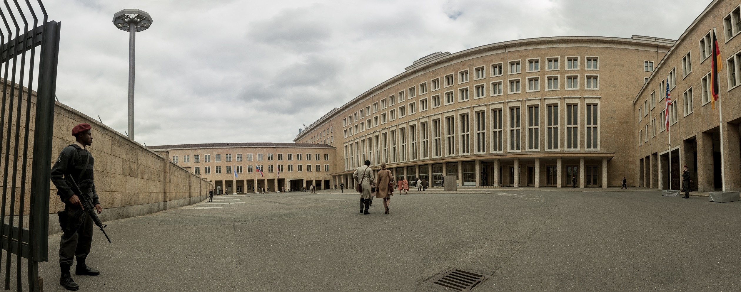 Absolutely. One of the biggest examples I can point to if you look at the design concepts for the place we call Customs, the immediate receiving area for people as they cross over from the different worlds: the wood panelling, the Polaroid photos, even down to the circulation, this is all very closely taken at the crossings between East Berlin and West Berlin. The Customs set was very closely modelled on a real place, the Palace of Tears, the Friedrichstraße U-bahn station between East and West where people came through. It follows a logical system because a logical system actually existed in the real world. That did not come about till we landed on the ground in Berlin and started to scout locations.
