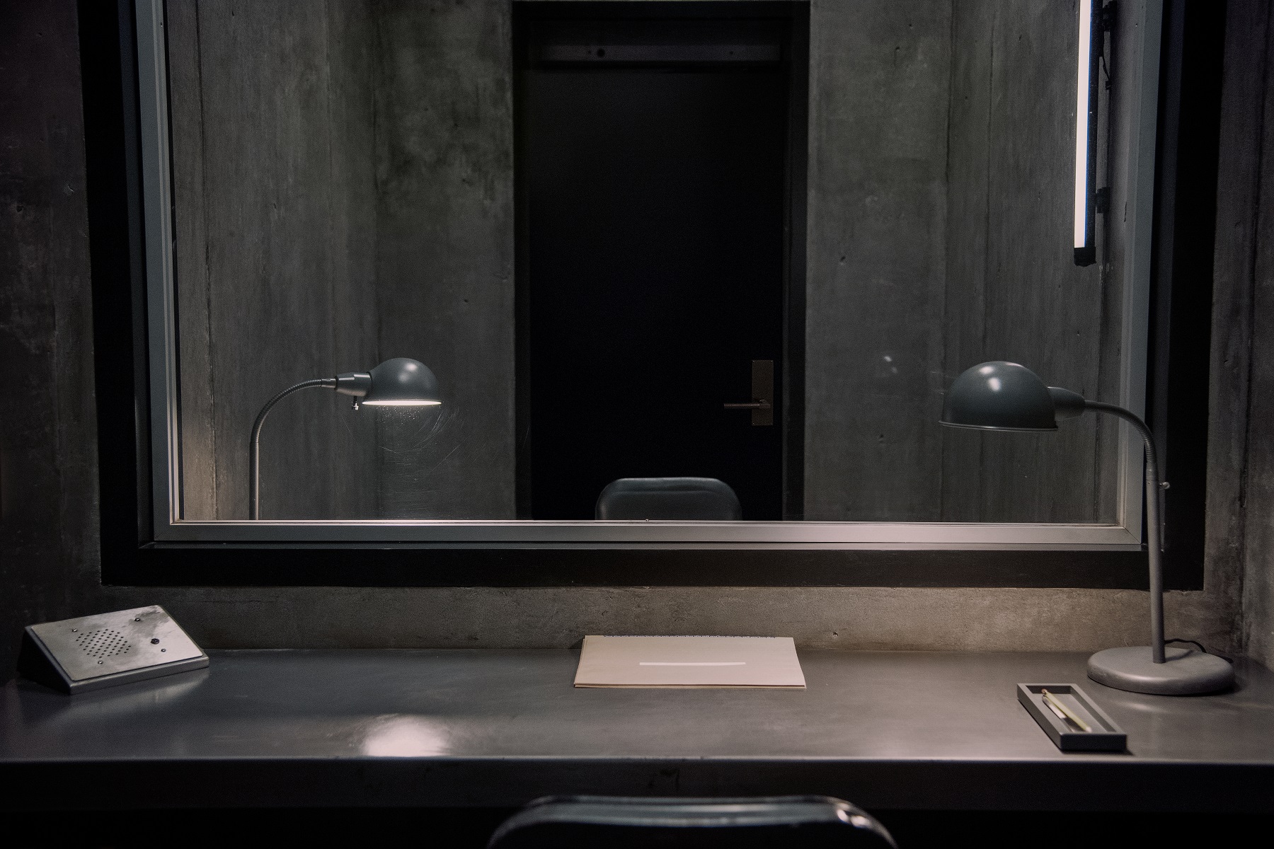 Yes, the whole show started from the idea of the interface room in the very first episode. Someone walked in in a very Fritz Lang-esque environment, stepping down a long corridor with a bunch of other people who are wearing identical suits they had to change into, and passing coded messages across to their counterparts the other side of the lines.