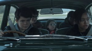 Having had an episode where we followed various characters and their threads, this one focuses back on the band of kids merrily driving a ‘borrowed’ classic Jag down mostly empty motorway to the Channel Tunnel, so they can hike across to France and rescue their mate they are pretty sure is there. Occasionally, the episode dallies with Caspar himself, still comatose and watched over by a French doctor who is Very Sad about the fact he seems to be a vegetable, and determined that he be protected at all costs despite being a vegetable and her being a doctor, presumably with some passing notion of a duty of care towards her other patients in the middle of this literal apocalypse.