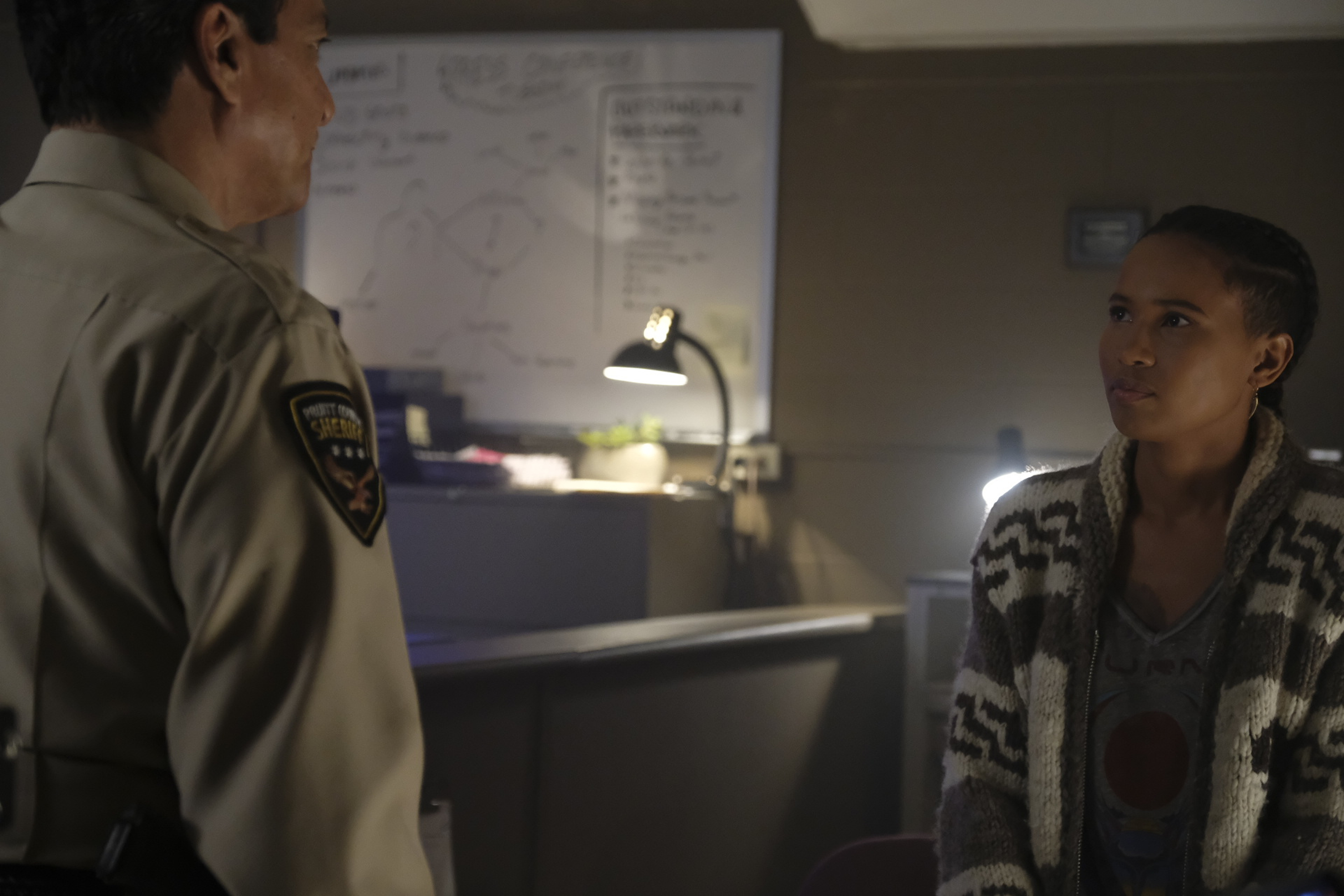 I’m going to start this one with a nitpick – at the end of the last episode we saw a deputy corner Ryn before she could escape, and this episode starts with her being brought in. We know that Ryn, for all her diminutive stature, is phenomenally strong (she threw a man twice her size out of his car through the windscreen) yet a female deputy and two male assistants manage to bring her in and she is kept secure by standard handcuffs – maybe it’s just that she’s less feral now and therefore less inclined to violence, but it stands out as an oddity.