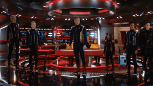 I wonder also if we’d have had as long an epilogue with Starfleet Command (the “we will never talk of this again” scenes) and then Pike taking Enterprise out as the end of this season of Discovery! Was that something added quite late in the process?