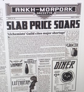 Then there were the sort of general ideas of samples and remixing – the fact that these books are so extraordinarily iconic but the first one Guards! Guards! was written in 1988, Night Watch was written in the early 2000s. I feel if you do just one, you miss all the special things that came with the later books. You want a blend of the darkness and the depth of characterisation and the comedy and the satire, so you need to borrow from across the spectrum.