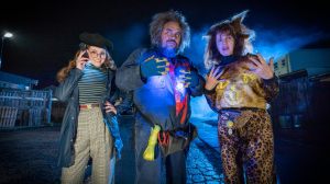 The powered- up team call themselves The Revengers, giving themselves names like Cat Lady, Power Man and Google Girl. The powers are not so great, and things come to a sticky end when it’s practically demonstrated that electricity and water really do not mix. Even the ever-bungling Constable Parker is affected the energy, becoming a huge magnet.